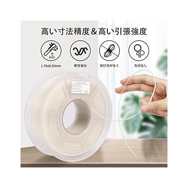 3Dプリンターとの互換性がない、直径1.75mm、サイズ精度+/-0.03mm。 市場に出回っているほとんどのFDM 3Dプリンターとパーフェクトフィット。 (MK3、Ender 3、Monoprice FlashForge など)。