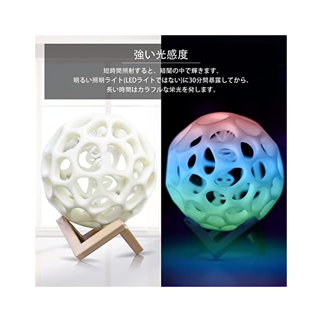 通常の3Dプリンターフィラメントの色がモノトーン? 「夜光」のフィラメントを試してみてください、昼間は白く、夜は虹の光が光ります。 控えめで、豊かで神秘的な外観が必要な作品に最適です。
