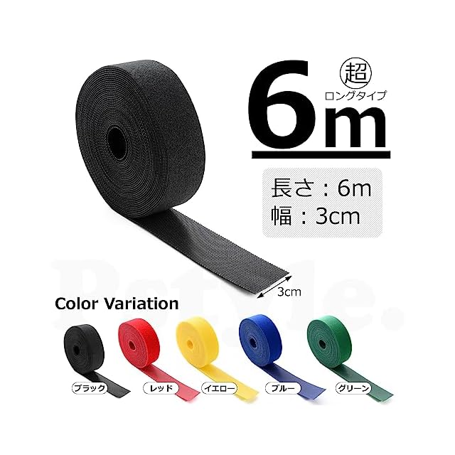 商品名:Pstyle. 面ファスナー 結束バンド ブックバンド ベルクロ テープ 6m巻 PST-019 (ブラック 3cm)