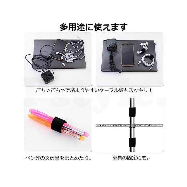 【様々な使い方で】 絡まりやすいPCやイヤホンのコードなど配線、ペンなどの文房具、家具の固定など、あらゆる場面でお使いいただけます。オフィスやお部屋がスッキリした空間に生まれ変わります。