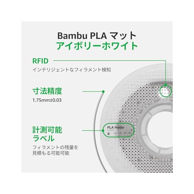 商品名:Bambu Lab マット PLA 3Dプリンター マット仕上がり PLA 3D プリントフィラメント 高精度 絡みが少ない 反り少ない 再利用可能なスプール付き AMSと使用可能 3Dプリント造形造形材料 1.75mm 1kg アイボリーホワイト