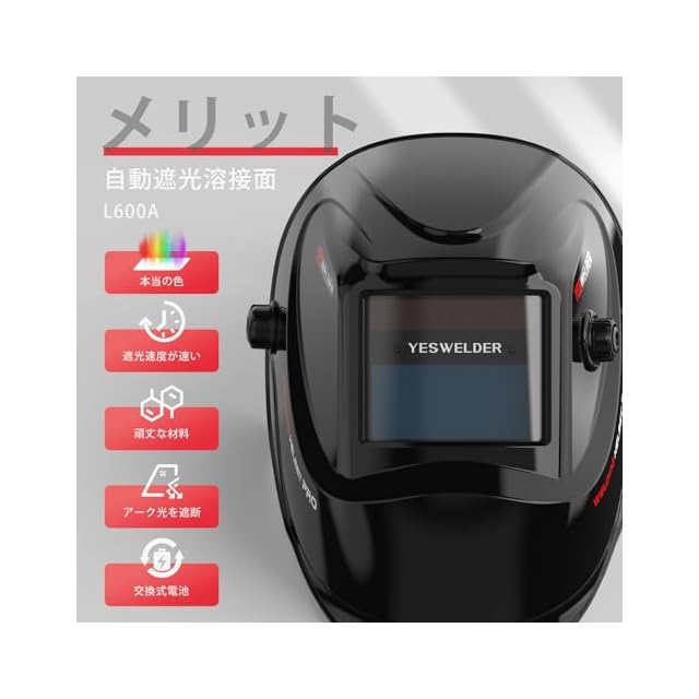商品名:YESWELDER 溶接面 本当の色を映す ソーラーパワー 自動遮光溶接面 1/30000秒 遮光度4/5-9/9-13 TIG MIG ARC溶接に対応溶接ヘルメット