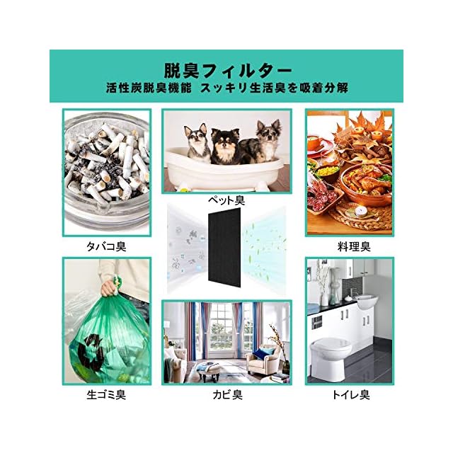 【製品機能】集じんフィルター:花粉やアレル物質(ダニのふん・死がい)、室内空気汚染物質、ティーゼル粉塵、NOx・iso、カビ菌、ペットの毛、ホコリ・チリなどを吸着します。脱臭フィルター:タバコのにおい、トイレのにおい、生ゴミのにおい、料理のニオイ、ペットのにおい、汗のにおい、カビのニオイなどを除去します。加湿フィルター:加湿フィルターに水を透過させ、ファンの風で気化させる方式で、室内の湿度を素早く快適な湿度まで上昇させる。