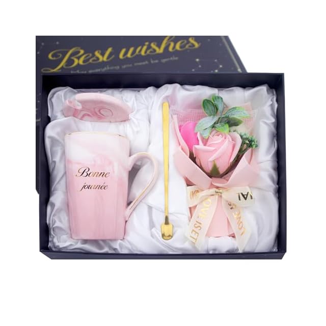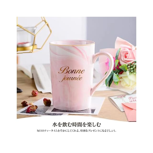 【特別感あふれる女性 プレゼント 】マグカップの贈り物には「温もりに包まれますように」という想いが込められています。大理石風の北欧デザインは、どんなインテリアにも馴染みやすく、お部屋を彩ります。ゴールドのフランス語「Bonne journée」のメッセージは、大切な方の毎日が浪漫と温もりに満ちたものになりますようにとの願いを表しています。同系色のピンクのソープフラワーと黒金のメッセージカードを組み合わせ、実用性と美しさを両立。これは単なる贈り物ではなく、優しいサプライズと期待の証。大切な人への感謝の気持ちと、特別な日をお祝いする心のあらわれです。
