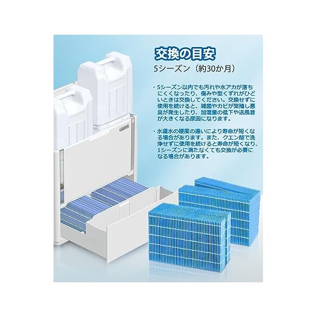 【交換の目安】約5シーズン。水質の硬度により、加湿フィルターの寿命は異なる。