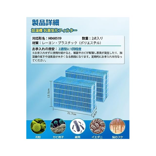 H060519 加湿フィルター 抗菌気化フィルター HD-244 HD-181 HD-183 HD-184 HD-1500F 等の機種に適用 ハイブリッド式加湿器 加湿器 互換品 【2枚入り】 | つむぎ屋