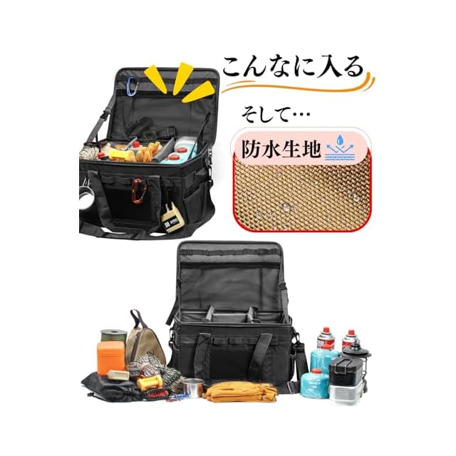 このソフトキャリーケースは、キャンプやDIYに必要な道具をすっきり整理できるギアケースとしても便利。耐久性と機能性を兼ね備えたデザインで、収納力を求めるすべての方におすすめ。どんなシーンでも頼れる相棒として、ぜひご活用ください!アウトドアや日常使いに圧倒的に優れ物の収納ボックスです。防水オックスフォード生地を使用し、耐久性と防水性を兼ね備えた設計で、雨天や湿気の多い環境でも安心して使用できます。通気性と過密性のバランスを実現し、収納物をしっかり守ります。