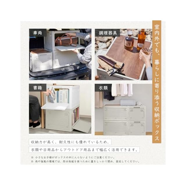 【※室内外兼用・5面開き】シンプルなデザインで主張しすぎず、室内外に適しています。屋内ではリビングルーム、キッチン、寝室など、様々な場所で活躍します。また、屋外ではガーデニング用品、アウトドア用品、スポーツ用品などを収納するのに便利です。さらに、5面全てを開閉可能に設計しているため、大きなアイテムや複数のアイテムを一度に収納したり、取り出したりする際にも非常に便利です。屋内外での活動をより快適に、効率的にサポートします。