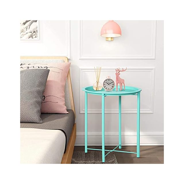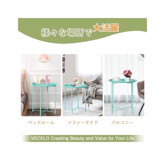 VECELO サイドテーブル トレイテーブル ソファサイドテーブル グリーン 47×47×50.5cm 丸 北欧 おしゃれ 折りたたみ ソファ横 ベッド横 シンプル お洒落【日本正規輸入品】 | つむぎ屋