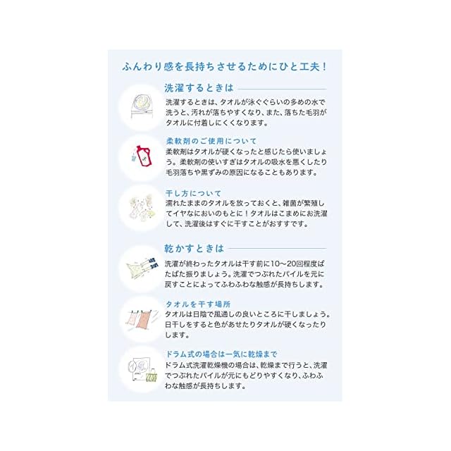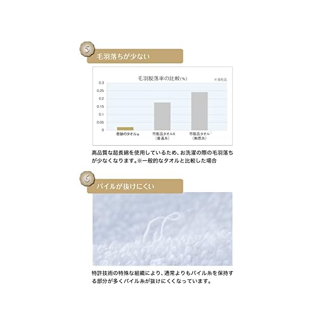 【毛羽落ちが少なくパイルが抜けにくい】本製品は超長綿を使用しているため、お洗濯後の毛羽落ちが少ないです。さらに、通常よりもパイル糸を保持する部分が多くパイル糸も抜けにくくなっているため長くご利用いただくことができます。