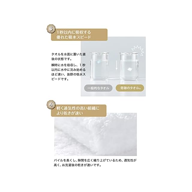 【1秒以内に吸収する優れた吸水力】細く長い繊維が糸の中にたくさんの隙間を作ることで、そっと触れただけで素早く水分を吸収することができます。