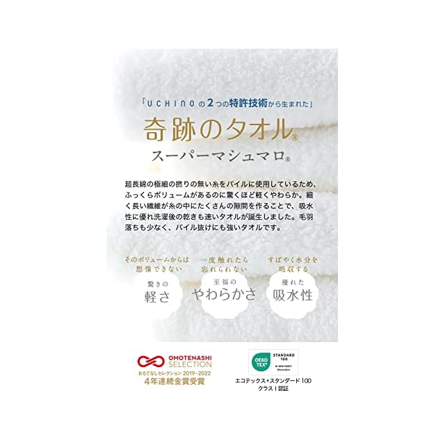【奇跡のタオル】 UCHINO スーパーマシュマロ スモールバスタオル マシュマロのような至福のやわらかさ 特許技術 驚きの軽さ 吸水力 吸水速乾 毛羽落ちが少ない サステナブルコットン 綿100% スモールバスタオル イエローグリーン 8842B889