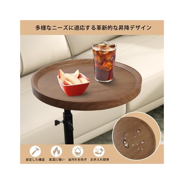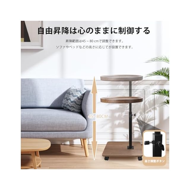 【高さ調節可能ソファ サイドテーブル】机の高さはその実用性に影響し、この机の45-80cmの高さは自由に調節できます。調節が簡単で、手をひねるだけで調節できます。昇降がスムーズで、時間が省けて安心です。そのため、ソファやベッドと完璧にマッチし、安心して使用することができます。