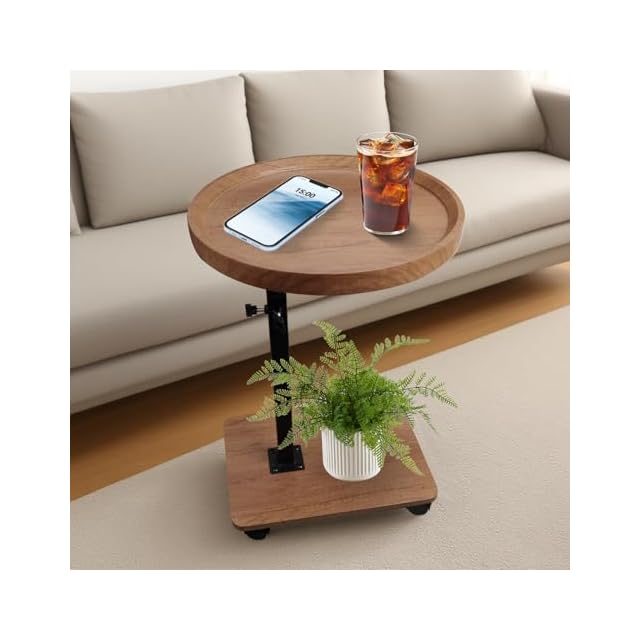 FYY サイドテーブル 昇降式 キャスター付き 【2025業界新進化 介護テーブル】可動式 360度自由回転 高さ調整45〜80cm ベッドサイド コの字型 安定 耐荷重がいい 耐久性 小型 省スペース おしゃれ 組立簡単 移動便利 一人暮らし 食卓 小型家具(くるみ色,丸型 直径45×高さ45-85cm) | つむぎ屋