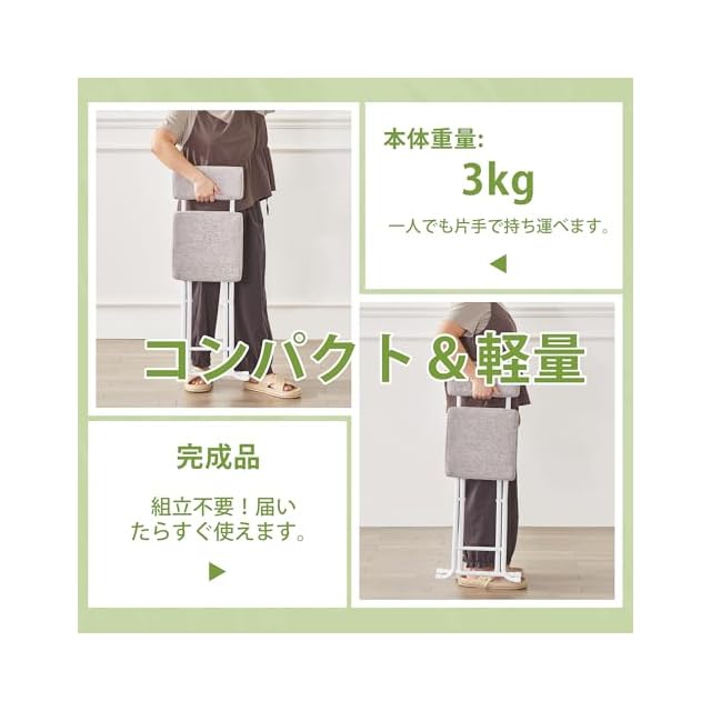 【利便性】組み立て不要!届いたらすぐ使えます。コンパクトに折り畳めるのでスッキリ収納が可能です。また、水や汚れに強いPUレザーを使用し、座面には耐久性が高くて汚れがあってもサッと拭くだけでお手入れ簡単です。