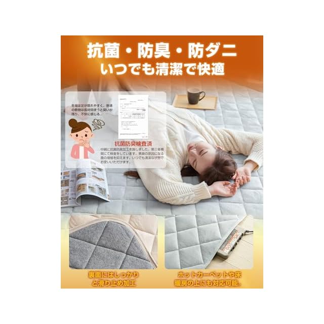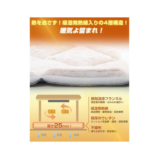 【滑り止め加工&防音効果】裏地は滑り止め加工が施されているので、フローリングに敷いても滑りにくいです。4層構造で階下への音を軽減します。床暖房・ホットカーペットにも対応します。