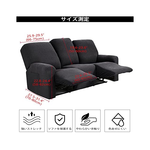 color:ブラック size:リクライニングチェアカバー, 3人掛け: