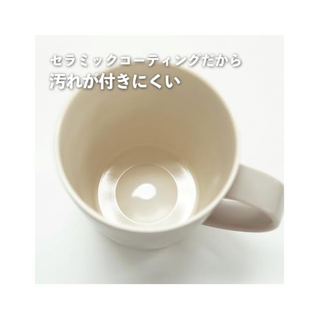 セラミックコーティングにより、ステンレス製ながら陶器のような滑らかな口当たり。 お茶やコーヒーの味わいを邪魔しません。 茶渋などの汚れが落ちやすく、お手入れが簡単です。