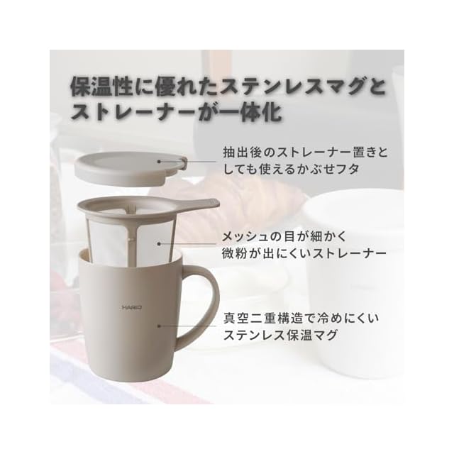 HARIO ハリオ ティー&コーヒーメーカーマグ ハンドドリップ 初心者 ギフト セット ティー ペーパーレス 保温マグ 保冷マグ マグカップ 父の日 プレゼント 誕生日 お祝い グレージュ サクラピンク ネイビー お茶 TCM-300 | つむぎ屋