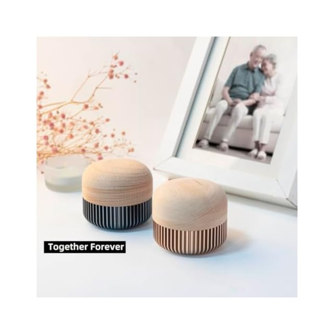 【ミニ骨壷】 仏壇にもさりげなく置けるかわいいミニ骨壷です。両手でそっと温めるように持つことができる、ころんとした丸みのあるフォルム。★ミニ骨壷:その中に20g透明ボトルが入っていて、それに2gのプラスチック計量スプーンが付いています。★本体材質:アルミ製+天然木ブナ材無垢、手触り感もよく、木の暖かさを感じさせます。ミニ骨壷、お墓が遠くてなかなかお参りに行けない方、分骨して一部を手元に置いて、場所を取らず、ずっと置いておけます。
