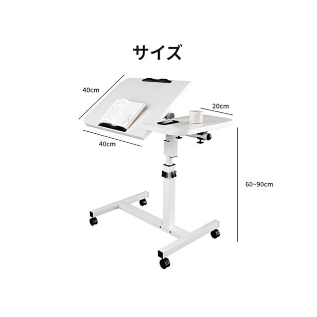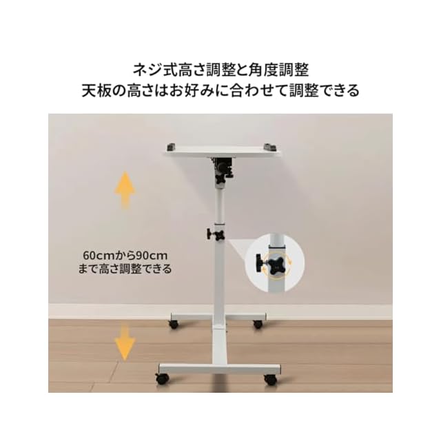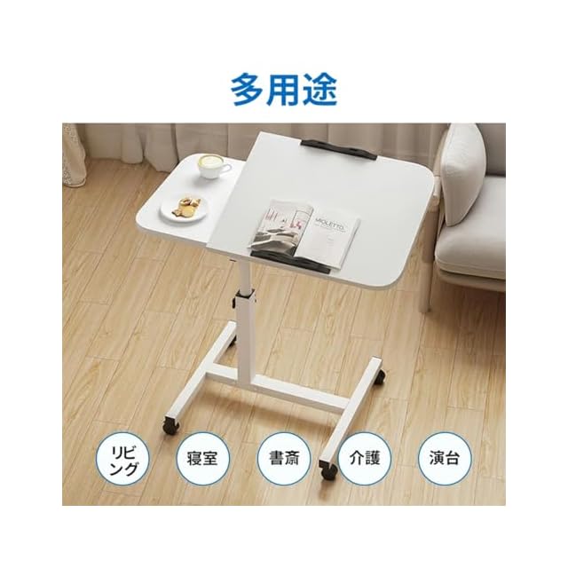 Madolly サイドテーブル 昇降式テーブル キャスター付き 無段階高さ調節 角度調整 移動式 介護用 パソコンデスク 在宅勤務 テレワーク 勉強机 仕事デスク おしゃれ 幅60cm×奥行40cm×高さ60~90cm | つむぎ屋