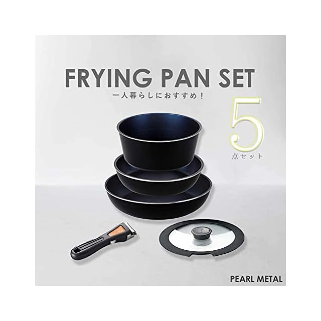 パール金属 フライパン 鍋 5点 セット IH対応 ブラック ダイヤモンドコート 取っ手の取れる セット5 HB-3976
