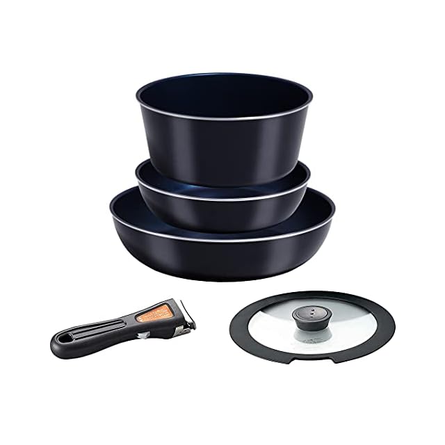 取っ手が取り外せるので、鍋とフライパンを重ねてコンパクト。省スペースに収納できます。