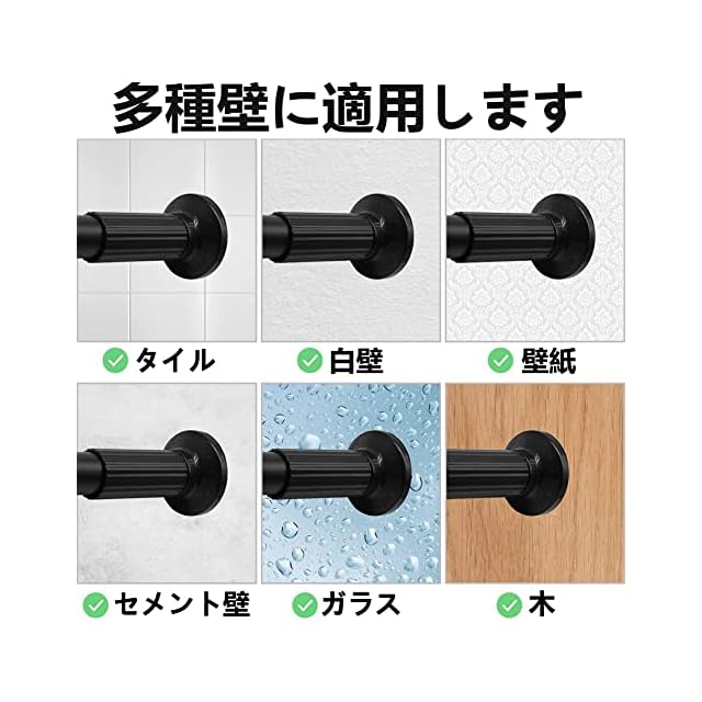 【工具不要・壁を傷つけない】くぎ・ネジ等の工具を使わず、突っ張るだけで楽々設置できるつっぱり棒です。木製・ガラス・大理石・タイル・壁紙・モルタルなどの様々な壁面に対応可能です。また壁に穴を開けず、跡も残りさず取り付け可能で、賃貸の家でも使えます。収納スペースが足りない時に取り付けて、家内の収納スペースを最大限に解放できます。