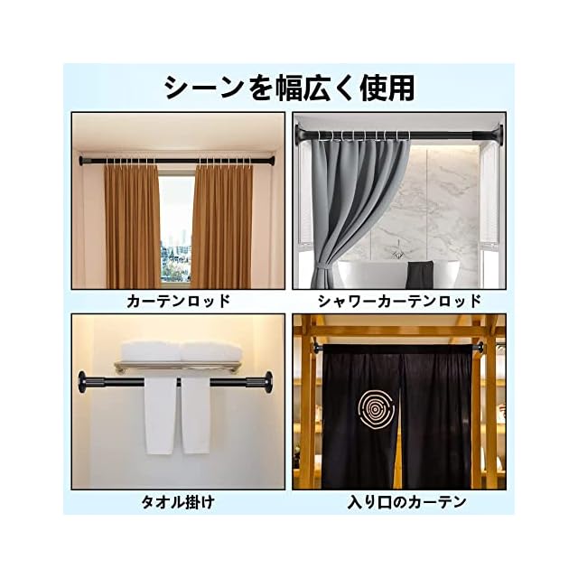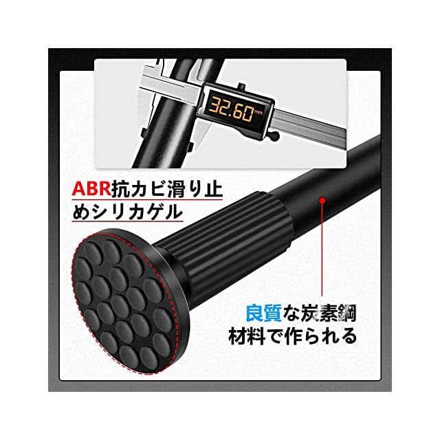 【錆びない高品質素材】つっぱり棒は高強度炭素鋼製で、表面に防錆塗装をされ、錆びとカビに強くて、湿気の多い浴室に設置可能です。乾燥機や換気扇で洗濯物を乾燥させたい方にぴったりです。お風呂場や水回りでも錆びる心配せず、安心して使用できます。シンプルなデザインでインテリアを邪魔しません。