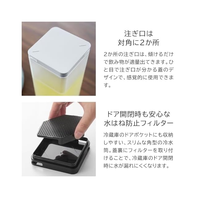 山崎実業(Yamazaki) 水はね防止フィルター付き 両方から注げる 冷水筒 【2個セット】 ピッチャー スリム 1.2L 食洗機対応 冷水専用 タワー tower ブラック 10238×2 | つむぎ屋