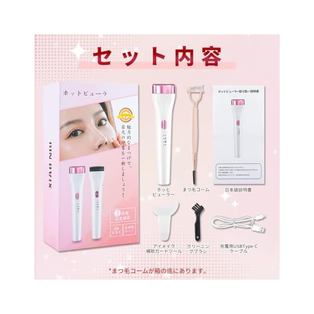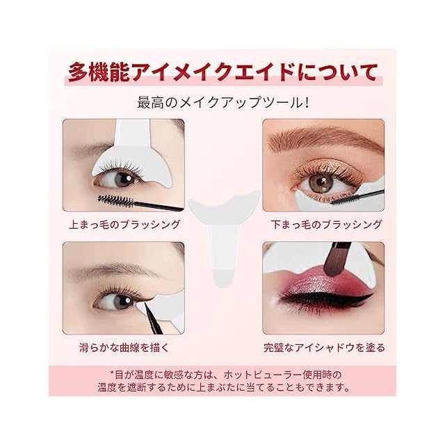 豊富な付属品:アイメイク補助ガードツール:マスカラ、アイライナー、アイシャドウなど、2種類のラジアンで上下の目の形にマッチする理想的なアイメイクで、目の角や頭にぴったりフィットします。目が温度に敏感な方は、ホットビューラー 使用時の温度を遮断するために上まぶたに当てることもできます。まつ毛コーム:マスカラを付け、まだ乾かないうちに根元から毛先に向かってとかしてください。つけすぎたマスカラをほどよく取り除き、綺麗なセパレートのまつ毛になります