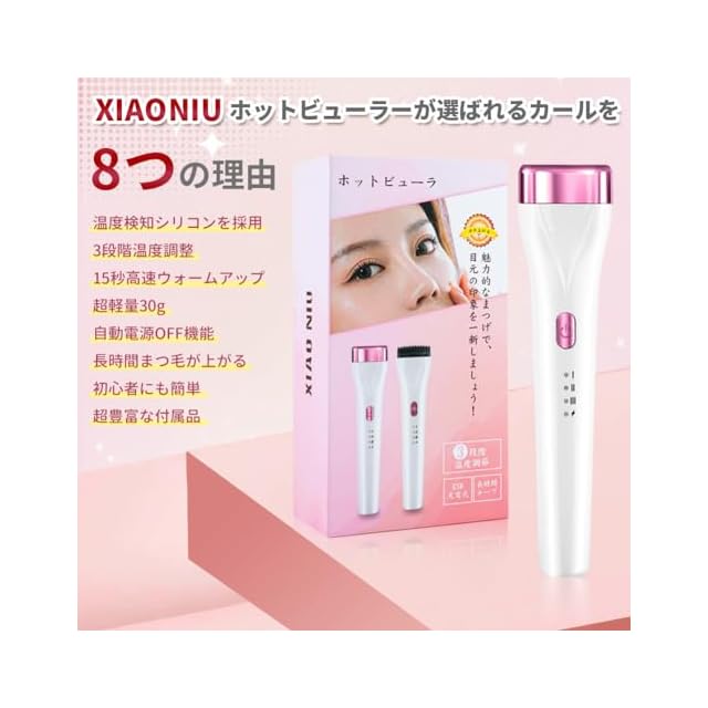新登場アップグレード版:最新のXIAONIUホットビューラー、まつ毛を短時間で巻き上げることができます。従来のアイラッシュカーラーや他のホットビューラーと比較して、このデザインはまつげをより均等に加熱し、素早いカールとより長い持続効果を実現します。最新技術を採用し、日本人女性のまぶたのカーブのために開発されてホットビューラー。数秒で魅力的なカールを作り上げる、アイメイクに華やかさをプラスします