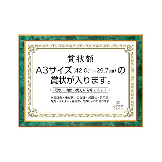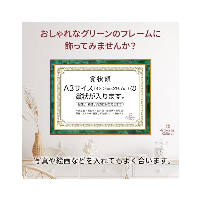 【特徴1】コンクールや大会で得た賞状や表彰状・卒業証書・免許証・感謝状・功労賞・認定書・修了書などをおしゃれに飾れます。また写真・絵画・ポスターなどにもよく合います。