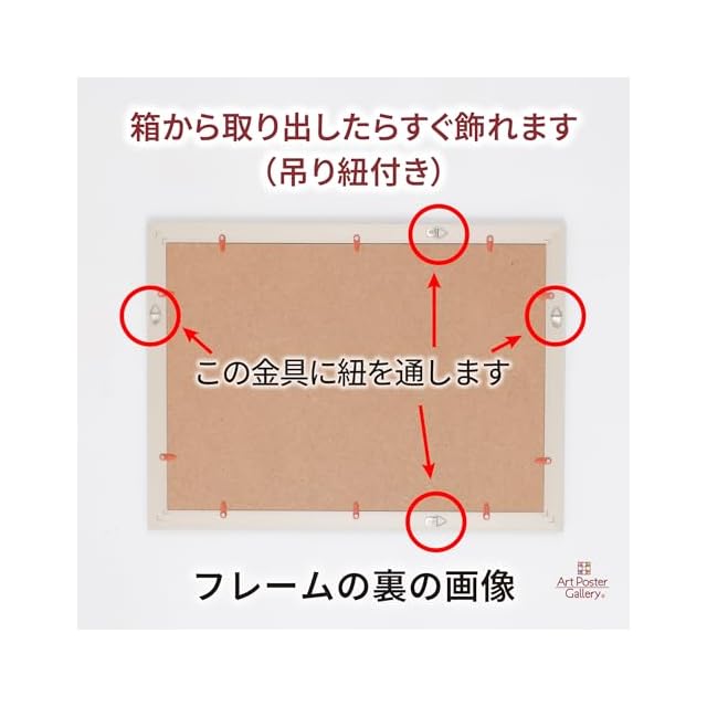 【特徴3】紐付き。箱から出せばすぐ飾れます。縦横どちらでも対応できます。