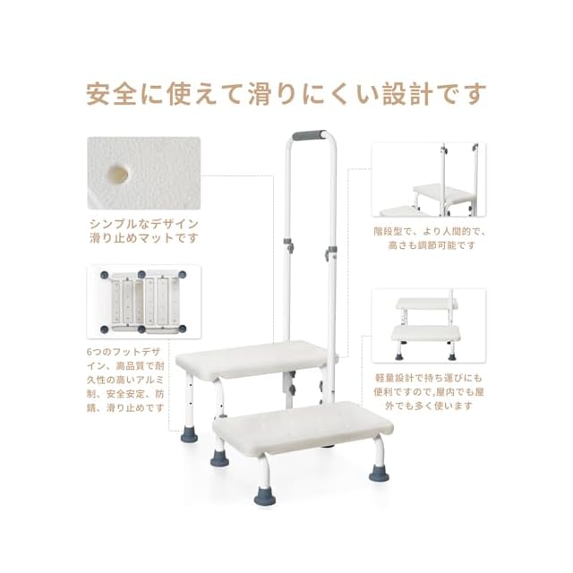 SUKONG 踏み台 手すり付き ステップ 高さ調整 滑り止め付き 低い 手すり 手摺り 台 段差解消 転倒防止 玄関 室内 屋内 屋外 浴室 お風呂 車 軽量 老人 介護 補助 大人 子供 持ち運び 小さい 玄関ステップ 浴槽 バスルーム キッチン リビングルーム シャワーチェア 昇降台 ふみ台 (SKC03) | つむぎ屋