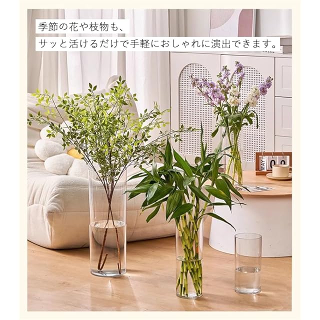 「水入れOK|生花もフェイクフラワーも」 水を入れて本物の花を活けるのはもちろん、フェイクフラワーやドライフラワーとも相性抜群。幅広いシーンで活躍します。
