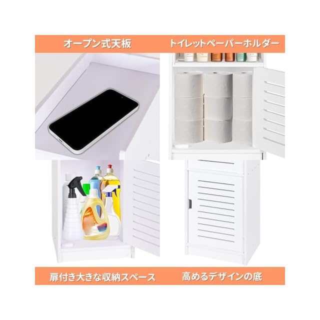 【スリムなデザインで省スペース】サイズは約幅24*奥行20*高さ74cmで、スリムなサイズ設計なのに、トイレットペーパーやトイレ用品をひとまとめに収納できる優れもの!縦型のスリムな設計で邪魔にならないサイズ感、省スペースに収納空間を作るため、徹底的にスリムなデザインにこだわりました。