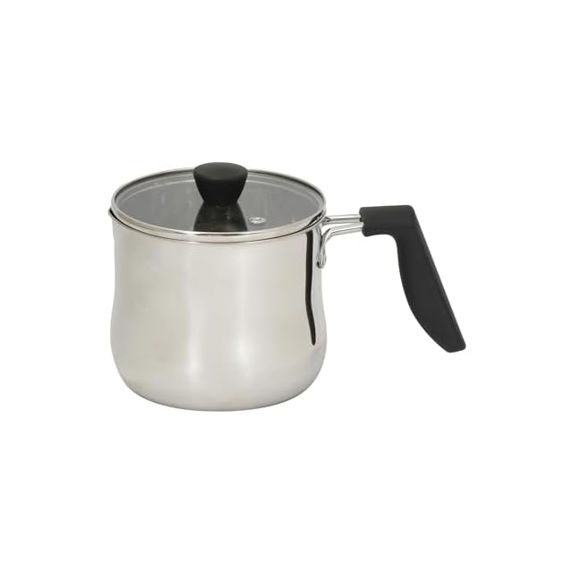 《本体》素材・材質:本体/ステンレス鋼(クロム18%・ニッケル8%)(底の厚さ0.4mm)、取っ手/フェノール樹脂(耐熱温度150度)、《蓋》品名:強化ガラス製器具、強化の種類:全面物理強化、その他の材料:縁リング/ステンレス鋼、つまみ/フェノール樹脂(耐熱温度150度)、寸法:14cm、満水容量:1.6L