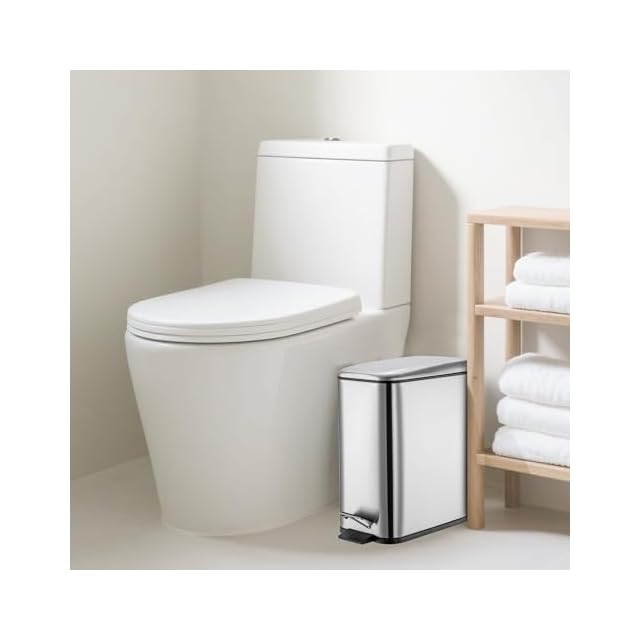 SOPRANNOMIN 5L 5リットル ステンレス製 トイレゴミ箱 狭い所利用 小さい オシャレゴミ箱 ダストボックス 四角形 蓋付き ペダル式 音無し生ごみ 防水 指紋防止 オシャレ キッチン トラッシュカン リサイクルカンバスルーム トイレ リビング シルバー