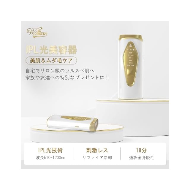 商品名:Wolliran 脱毛器 VIO対応 全身適用 手動・自動照射 無痛脱毛 IPLだつもうき サファイア冷却 5段階調節 家庭用脱 毛 器 ムダ毛ケア 光美容器 保護眼鏡・カミソリ付き ホワイト