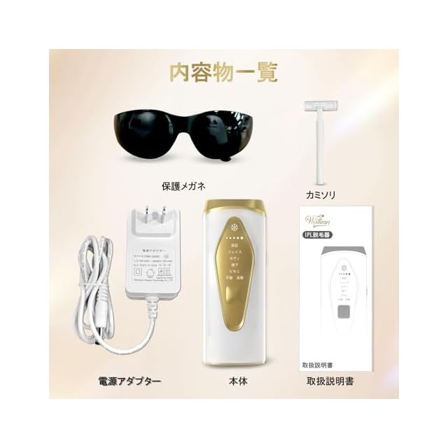 【1年延長サービス】日本の電気用品安全法(PSE)認証を取得しており、安全にお使いいただけます。さらに、購入日から2年間の安心付き。万が一、商品に破損や使用中の不具合がございましたら、「注文履歴」→「出品者に連絡する」からお問い合わせいただけます。弊社(Wolliran-JP)は迅速かつ丁寧に対応いたします。パッケージ内容:脱毛器本体*1、電源アダプタ*1、かみそり*1、メガネ*1、書付取扱説明書*1。