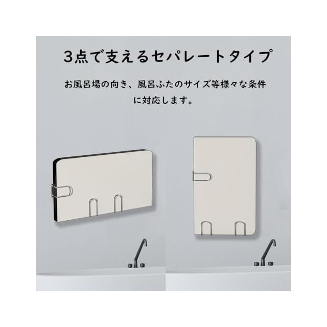 【3個入りで自由に設置】3点で支えるセパレートタイプだから、お風呂場の向き、風呂ふたのサイズ、種類等様々な条件に対応できる。また、蓋を横にも縦にも置けるので、便利です。
