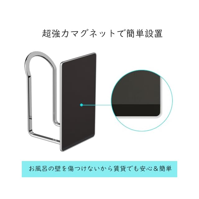 【設置簡単】マグネットで貼り付けるタイプは、設置しやすさと扱いやすさの両方を兼ね備えているのがポイント。工具いらずで楽に設置できるうえ、お風呂の壁を傷つけないから賃貸でも安心&簡単!