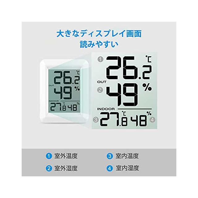 商品名:Timloon デジタル温湿度計 外気温度計 ワイヤレス 温度湿度計 室内 室外 一つセンサー 高精度 LCD大画面 置き掛け両用 華氏/摂氏表示 温室 温度管理 健康管理 日本語取扱説明書