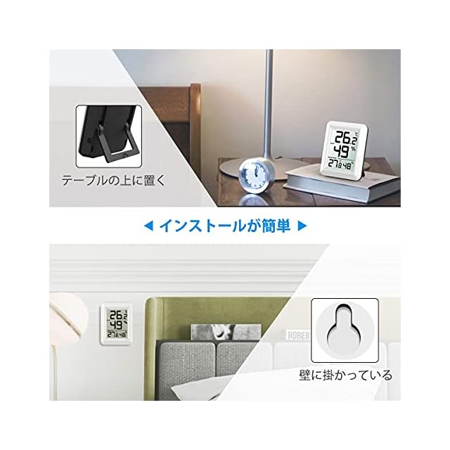 【注意事項】</br> ■本品は設置された場所の温度、湿度しか測定しません。</br> ■テレビなどで発表される天気予報や外気の数値とは異なります。</br> ■本製品を壁に掛ける際は、吊り具や掛けネジの強度が十分に製品荷重に耐えられることを確認してから設置してください。</br> ■落として、或いは強い衝撃を与える場合破損になる可能性があり、ご注意ください。</br> ■ベースステーション:2 x 単4形電池(別売り)</br> ■リモートセンサー:2 x 単4形電池(別売り)</br> </br> 【卓上スタンド・壁掛け】</br> 壁にフックで吊下げたり、本棚にスタンド置きなど、自由な置き方ができるので、人間だけでなく、ペットや観葉植物の環境管理にも大便利!</br> スタンド部分に無理な力を加えると、スタンドが外れたり破損する場合があります。</br> この点についてご注意ください。</br> </br> 【健康管理】</br> 人間によって温湿度に対する敏感度が違うなので、こういう温度計と湿度計があったらあんしんしますね。</br> 特に体の感覚が鈍くなっている高齢者、或いは体の感覚が鋭いですが言えない赤ちゃん、ペットに対する周囲の温度湿度はとても重要なことの一つです。</br> これから、家族の健康のため体調管理がしっかりしましょう。</br> </br> 【大型液晶画面&オシャレな外観】</br> 大きいの液晶スクリーンで、測定値がより大きく表示され、遠くでもはっきり見える、読み取りやすいです。</br> オシャレな外観で、リビング、寝室、子供部屋、書 斎、キッチン、洗面所、ペットのケージ、オフィスなどの色々な場所で活用できます。</br> </br>