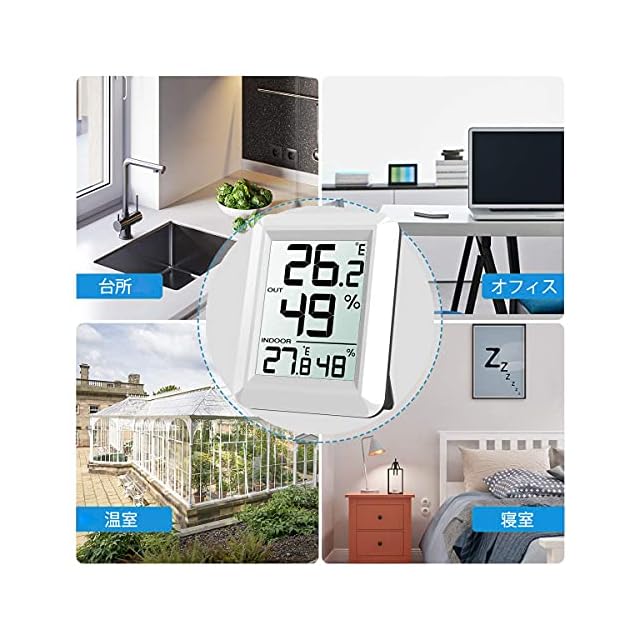 【見やすい&健康管理】:本体サイズ:7.5cm x 5.8cm x 2cm。小さくて邪魔にならず、文字は見やすい大きさで、2箇所での温湿度が一目でわかることです。家族の健康管理に、インフルエンザや風邪な どの予防対策に、お部屋の乾燥チェックでお肌の潤いを保つのに、他にも、カビ対策や熱中症対策などに役立ちます。