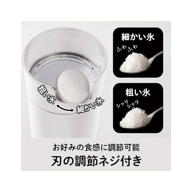 好みの食感に調節可能な刃の高さ調節ネジ。氷の状態に合わせて刃の高さを簡単に調節することが可能で、氷の粗さ(ふわふわ氷~シャリシャリ氷)を変えることができます。