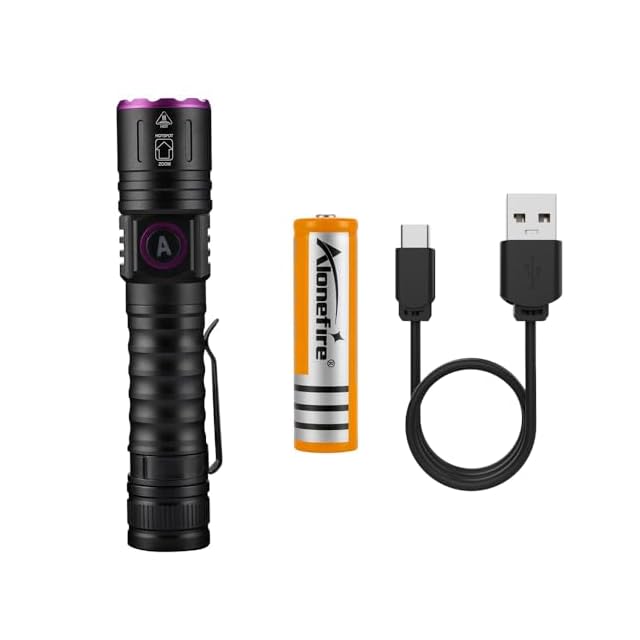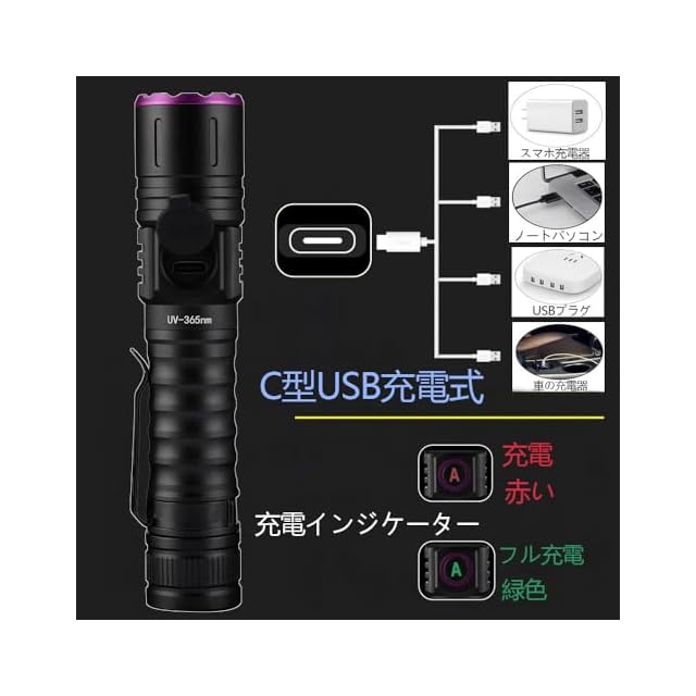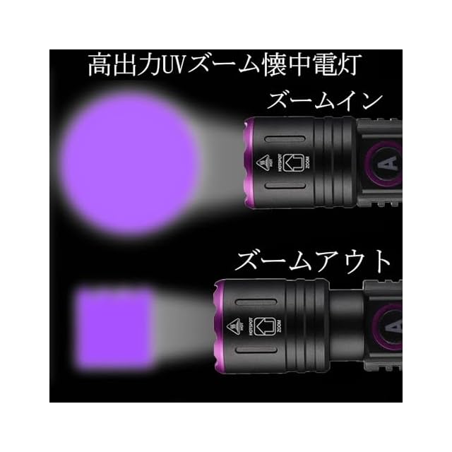 Alonefire SV87 5W 紫外線 ズーム ブラックライト 強力 UV LED ライト 波長365nm C型USB充電式 アニサキスライト ウッド灯検査 ペット尿検出器 スコーピオン 鑑定 真贋 レジン用 硬化、猫真菌、釣り、鉱物 用 リチウム電池 付き | つむぎ屋