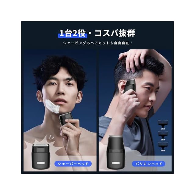 商品名:ひげそり 電動シェーバー 往復式 深剃り 電気シェーバー 知能ヒゲセンサー技術 Type-C急速充電 IPX7全身防水 乾湿両用【1台2役シェーバー/バリカン】バリカンヘット附属 低騒音 髭剃り 軽量 小型 持ち運び便利 旅行 出張 車内常備 父の日 プレゼント