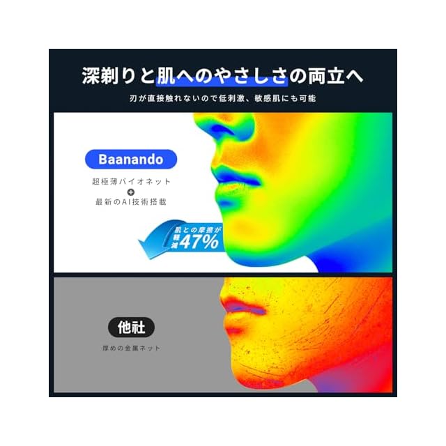 【肌にやさしい&敏感肌も】超極薄バイオネットと知能ヒゲセンサー技術を搭載した、ヒゲの濃いところではよりパワフルに、薄いところではパワーをセーブ、肌へ余分な負担を抑えつつ深剃りを実現します。肌を守りながらしっかりツルツルに仕上げたい敏感肌の人や初心者はぜひ検討してみてください。